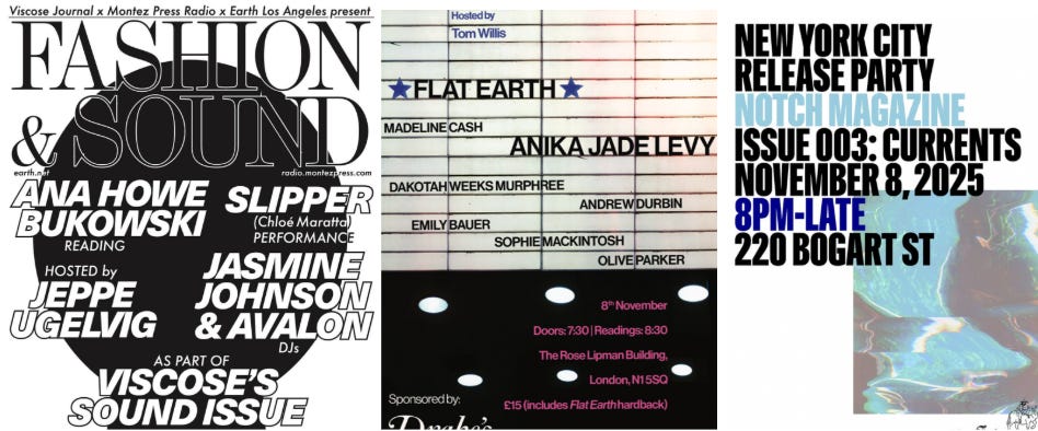 LOS ANGELES - From 7pm at Earth — Viscose Journal x Montez Press Radio x Earth present FASHION AND SOUND. Ft reading by Ana Howe Bukowski, performance by Slipper, and DJs Jasmine Johnson & Avalon. Hosted by Jeppe Ugelvig.