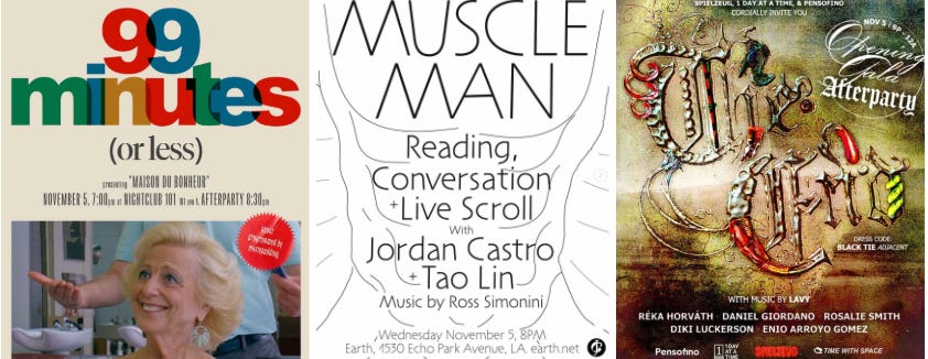 LOS ANGELES - From 8pm at Earth — Muscle Man event. A reading, conversation, and live scroll with Jordan Castro and Tao Lin. Music by Ross Simonini.