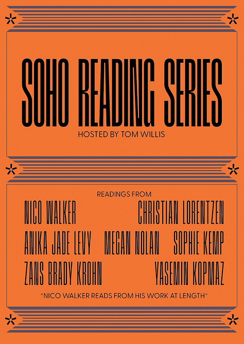 From 7pm at KGB Red Room — Tom Willis’s Soho Reading Series is in New York. Readings from Nico Walker, Anika Jade Levy, Zans Brady Krohn, Christian Lorentzen, Megan Nolan, Sophie Kemp, and Yasemin Kopmaz.
