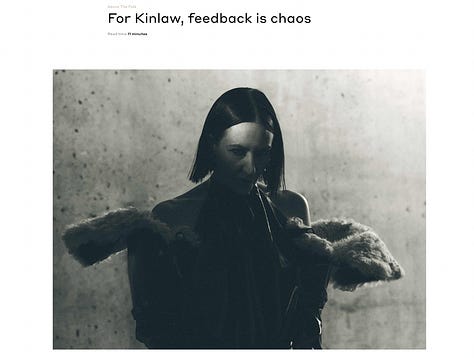 From 8pm - 11pm at Night Club 101 — Kinlaw celebrates her album release (Gut Ccheck out March 21). I spoke with Kinlaw about momentum, feedback, and this exciting forthcoming album for Document Journal. She will be performing on Wednesday, but “maybe not in the way that you think.”