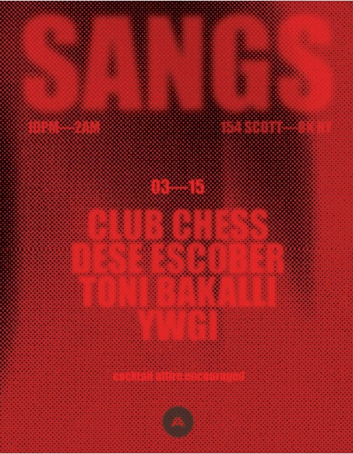 From 10pm at 154 Scott BK — Club Chess x Dese Escobar x Toni Bakalli x YWGI are throwing a party. Cocktails upstairs. Movement Below.