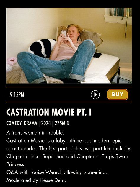 From 9:15pm at Roxy Cinema — Castration Movie Pt 1 is screening, followed by a Q&A with director Louise Weard.