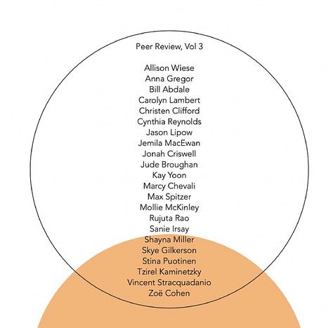 From 6pm - 9pm at Beverly’s — Peer Review, Vol. 3 celebrates the official publication launch party. Peer Review/ is an experimental publication of reviews for artists by artists. There are many wonderful artists contributing to this issue.