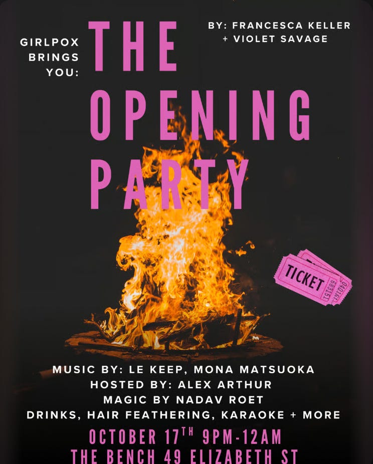 From 9pm - 12am at The Bench — GirlPox presents The Opening Night Party, in celebration of their debut production FYRE FEST WAS SO FUN!!! A night of magic, music, hair featuring, karaoke, and more.