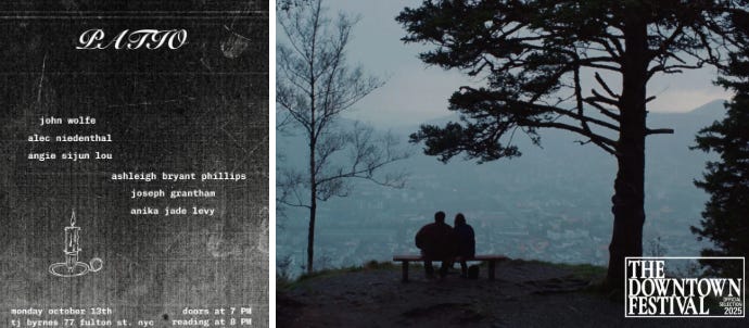 From 7pm (readings 8pm) at TJ Byrnes — Patio returns with an evening of reading, ft John Wolfe, Alec Niedenthal, Angie Sijun Lou, Asheligh Bryant Phillips, Joseph Grantham, and Anika Jade Levy. - “Come for the fun, stay for the shepherd’s pie.”